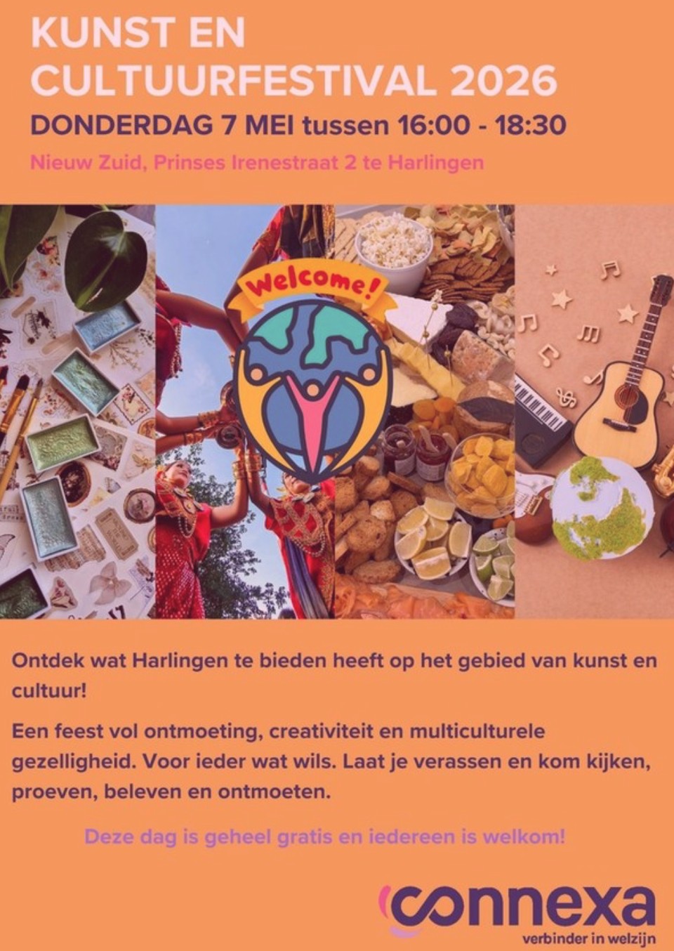 Tijdens het festival ontdek je wat Harlingen te bieden heeft op het gebied van kunst en cultuur. Laat je inspireren door creatieve workshops, geniet van muziek en dans en proef van internationale hapjes. De nadruk ligt op ontmoeting, verbinding en het vieren van culturele diversiteit.