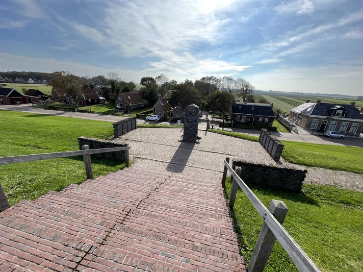 via dijkovergang naar buitendijks pad met hek en landmarkZeedijk 1